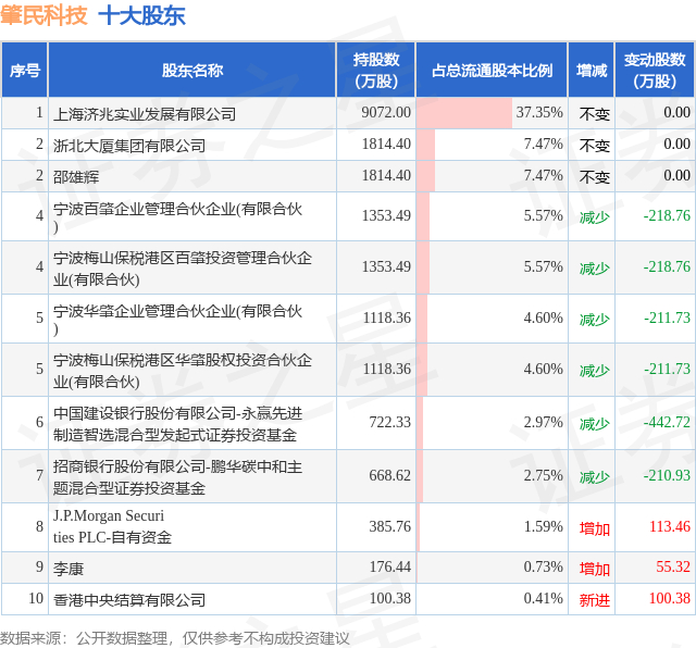 根据肇民科技2025年三季报公布的十大股东详情如下: