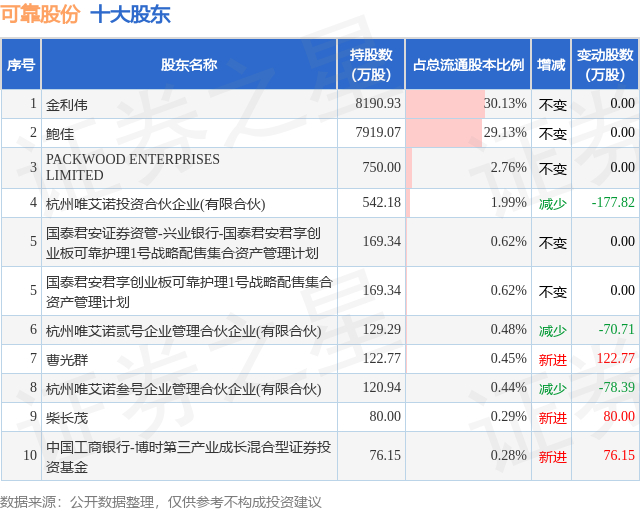 根据可靠股份2025年三季报公布的十大股东详情如下: