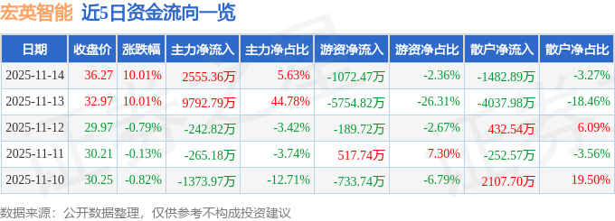 11月14日的资金流向数据方面,主力资金净流入2555.36万元,占总成交额5.63%,游资资金净流出1072.47万元,占总成交额2.36%,散户资金净流出1482.89万元,占总成交额3.27%。