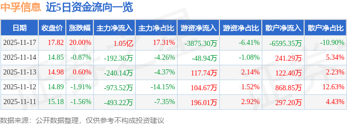11月17日的资金流向数据方面,主力资金净流入1.05亿元,占总成交额17.31%,游资资金净流出3875.3万元,占总成交额6.41%,散户资金净流出6595.35万元,占总成交额10.9%。
