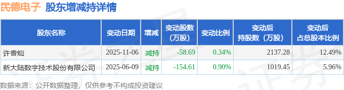 截至2025年11月17日收盘,民德电子(300656)报收于22.5元,上涨1.44%,换手率1.27%,成交量1.69万手,成交额3785.32万元。