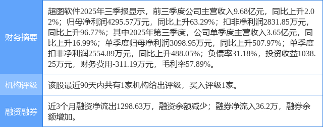 2025年11月2日,民生证券研究员吕伟,郭新宇发布了对超图软件的研报《2025年三季报点评:业绩大幅改善,信创、AI协同发力开启发展新征程》,该研报对超图软件给出“买入”评级。研报中预计2025-2027年归母净利润分别为1.32/2.18/2.80亿元,对应PE分别为65X、39X、31X,维持“推荐”评级。证券之星数据中心根据近三年发布的研报数据计算,该研报作者对此股的盈利预测准确度为16.54%。