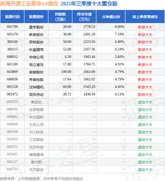 前海开源工业革命4.0混合的前十大重仓股如下:
