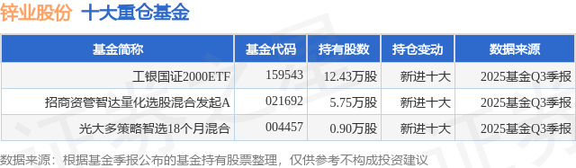 根据2025基金Q3季报公募基金重仓股数据,重仓该股的公募基金共3家,其中持有数量最多的公募基金为工银瑞信基金的工银国证2000ETF。工银国证2000ETF目前规模为0.55亿元,最新净值1.2906(11月18日),较上一交易日下跌1.51%,近一年上涨35.14%。该公募基金现任基金经理为刘子豪。刘子豪在任的基金产品包括:工银优选对冲灵活配置混合发起A,管理时间为2023年4月12日至今,期间收益率为0.63%;工银中证500六个月持有指数增强A,管理时间为2024年5月15日至今,期间收益率为41.14%;工银中证1000增强策略ETF,管理时间为2024年6月4日至今,期间收益率为65.29%;