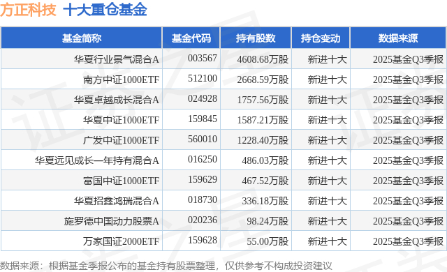 重仓方正科技的前十大公募基金请见下表: