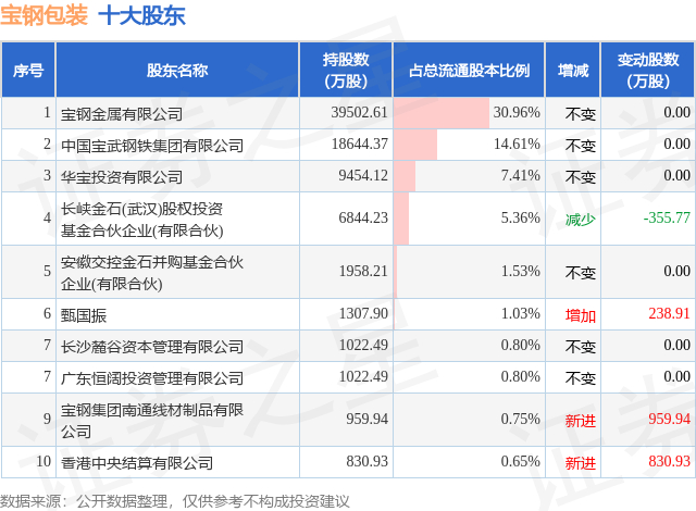 根据宝钢包装2025年三季报公布的十大股东详情如下: