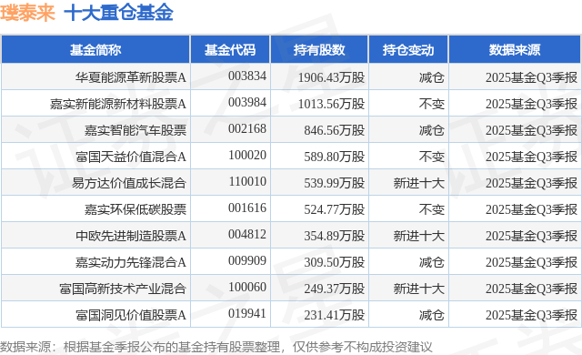 重仓璞泰来的前十大公募基金请见下表: