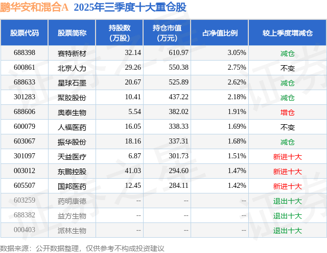 根据2025基金Q3季报公募基金重仓股数据,重仓该股的公募基金共4家,其中持有数量最多的公募基金为鹏华基金的鹏华安和混合A。鹏华安和混合A目前规模为1.9亿元,最新净值1.3999(11月20日),较上一交易日下跌0.19%,近一年上涨11.4%。该公募基金现任基金经理为汤志彦。汤志彦在任的基金产品包括:鹏华弘嘉混合A,管理时间为2017年12月14日至今,期间收益率为176.98%;鹏华尊惠定期开放混合A,管理时间为2018年10月27日至今,期间收益率为110.03%;鹏华安庆混合A,管理时间为2020年6月23日至今,期间收益率为41.79%。