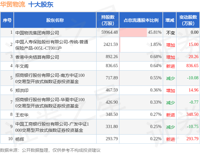 根据华贸物流2025年三季报公布的十大股东详情如下: