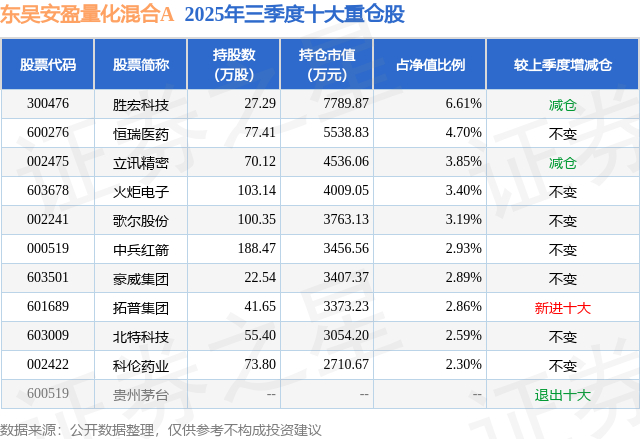 根据2025基金Q3季报公募基金重仓股数据,重仓该股的公募基金共7家,其中持有数量最多的公募基金为东吴基金的东吴安盈量化混合A。东吴安盈量化混合A目前规模为11.78亿元,最新净值1.1552(11月21日),较上一交易日下跌1.49%,近一年上涨5.06%。该公募基金现任基金经理为谭菁。谭菁在任的基金产品包括:东吴安享量化混合A,管理时间为2024年6月21日至今,期间收益率为25.34%。