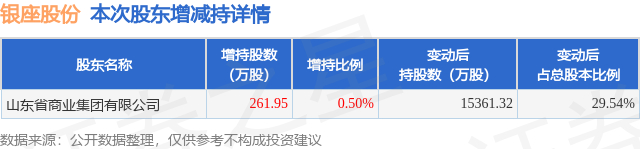 证券之星消息,11月24日银座股份发布公告《银座股份:银座股份关于控股股东及一致行动人权益变动触及1%刻度暨增持计划进展的提示性公告》,其股东山东省商业集团有限公司于2025年9月22日至2025年11月24日间合计增持261.95万股,占公司目前总股本的0.5037%,变动期间该股股价下跌4.45%,截止11月24日收盘报5.58元。