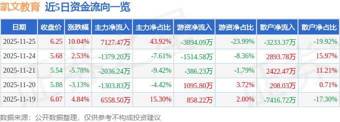11月25日的资金流向数据方面,主力资金净流入7127.47万元,占总成交额43.92%,游资资金净流出3894.09万元,占总成交额23.99%,散户资金净流出3233.37万元,占总成交额19.92%。