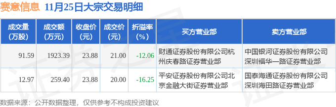 证券之星消息,11月25日赛意信息发生大宗交易,交易数据如下: