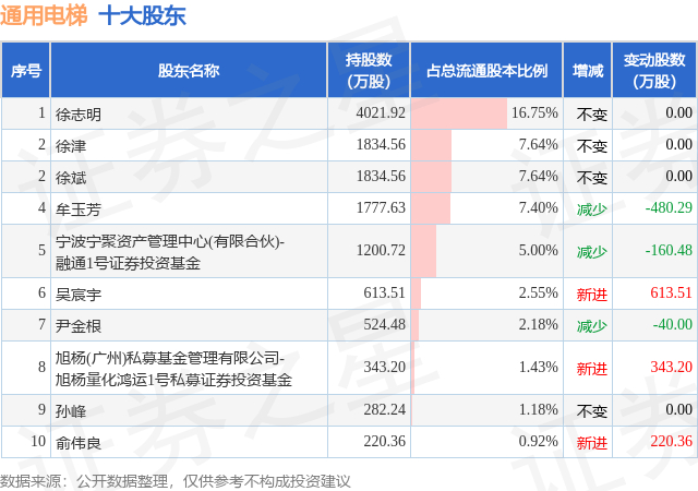 根据通用电梯2025年三季报公布的十大股东详情如下: