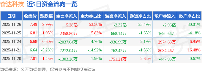 11月26日的资金流向数据方面,主力资金净流入5.28亿元,占总成交额53.5%,游资资金净流出2.32亿元,占总成交额23.49%,散户资金净流出2.96亿元,占总成交额30.01%。