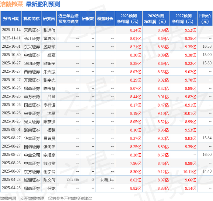 以下是详细的盈利预测信息:
