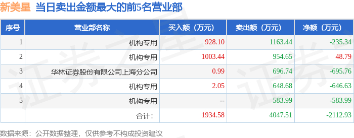 证券之星消息,沪深交易所2025年11月27日公布的交易公开信息显示,新美星(300509)因日涨幅达到15%的前5只证券登上龙虎榜。此次是近5个交易日内第1次上榜。