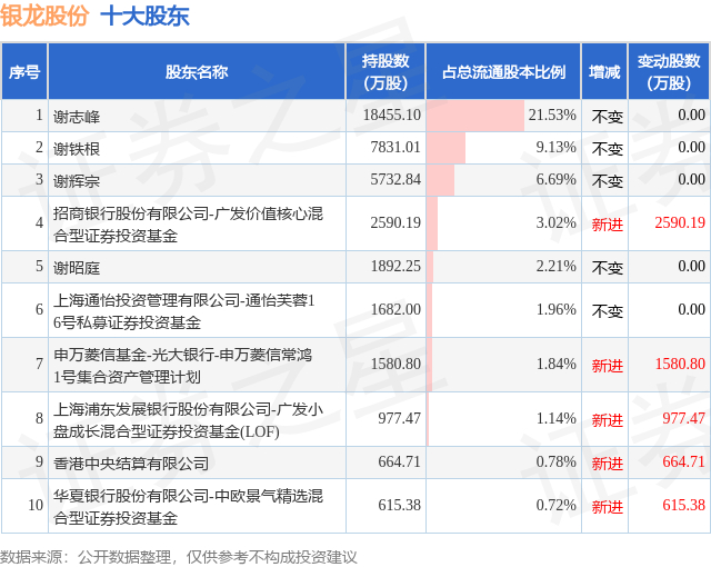 根据银龙股份2025年三季报公布的十大股东详情如下: