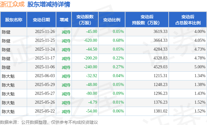 截至2025年11月28日收盘,浙江众成(002522)报收于5.04元,上涨0.8%,换手率2.07%,成交量18.72万手,成交额9404.84万元。