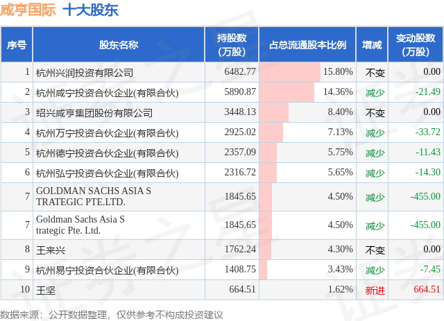 根据咸亨国际2025年三季报公布的十大股东详情如下: