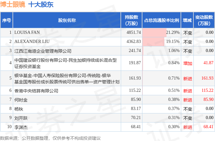 根据博士眼镜2025年三季报公布的十大股东详情如下: