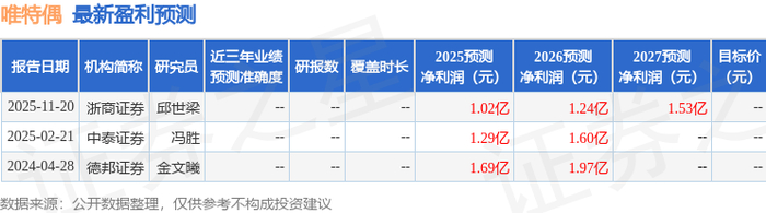 唯特偶2025年三季报显示,前三季度公司主营收入10.6亿元,同比上升24.0%;归母净利润6953.45万元,同比下降4.84%;扣非净利润6194.81万元,同比上升3.51%;其中2025年第三季度,公司单季度主营收入3.96亿元,同比上升19.67%;单季度归母净利润2735.17万元,同比上升15.98%;单季度扣非净利润2488.99万元,同比上升25.42%;负债率23.43%,投资收益630.28万元,财务费用45.77万元,毛利率16.26%。