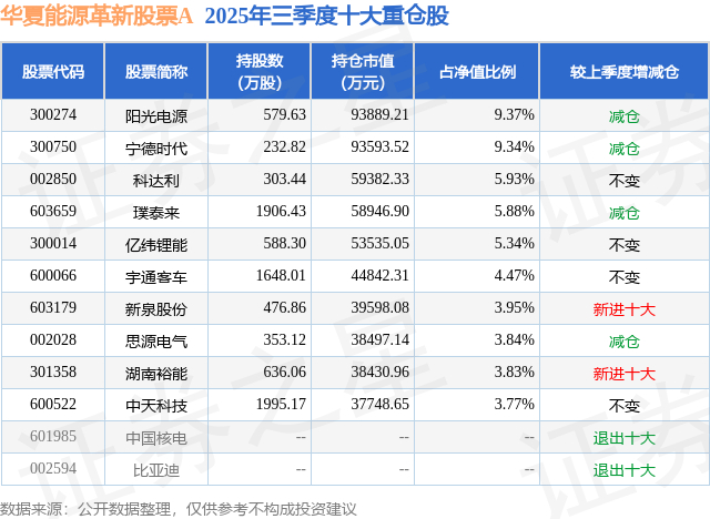 根据2025基金Q3季报公募基金重仓股数据,重仓该股的公募基金共125家,其中持有数量最多的公募基金为华夏基金的华夏能源革新股票A。华夏能源革新股票A目前规模为94.36亿元,最新净值3.189(11月28日),较上一交易日上涨1.33%,近一年上涨31.51%。该公募基金现任基金经理为杨宇。杨宇在任的基金产品包括:华夏新能源车龙头混合发起式A,管理时间为2021年9月15日至今,期间收益率为10.14%;华夏清洁能源龙头混合发起式A,管理时间为2023年8月22日至今,期间收益率为41.06%;