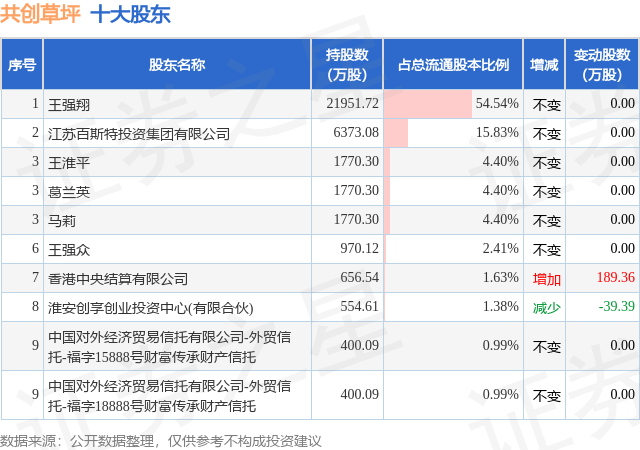根据共创草坪2025年三季报公布的十大股东详情如下: