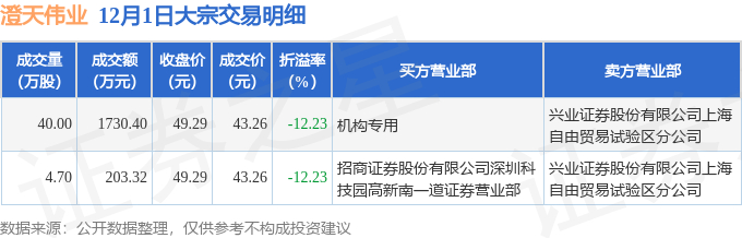 证券之星消息,12月1日澄天伟业发生大宗交易,交易数据如下: