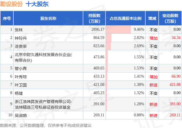 根据勘设股份2025年三季报公布的十大股东详情如下: