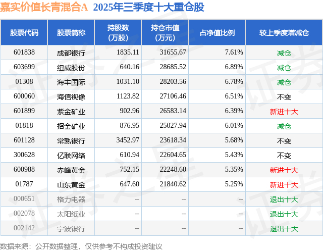 根据2025基金Q3季报公募基金重仓股数据,重仓该股的公募基金共63家,其中持有数量最多的公募基金为嘉实基金的嘉实价值长青混合A。嘉实价值长青混合A目前规模为33.99亿元,最新净值1.0169(12月1日),较上一交易日上涨1.45%,近一年上涨20.2%。该公募基金现任基金经理为谭丽。谭丽在任的基金产品包括:嘉实新消费股票A,管理时间为2017年4月11日至今,期间收益率为145.91%;嘉实价值精选股票A,管理时间为2017年11月6日至今,期间收益率为125.4%;嘉实价值优势混合A,管理时间为2017年11月14日至今,期间收益率为87.05%;
