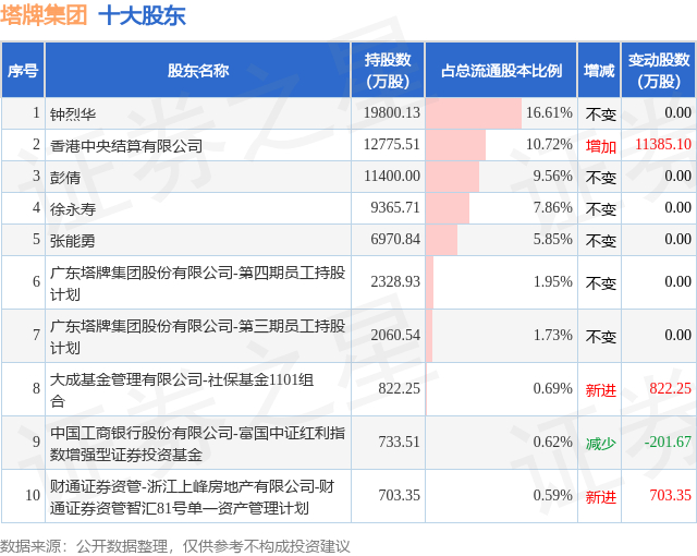 根据塔牌集团2025年三季报公布的十大股东详情如下: