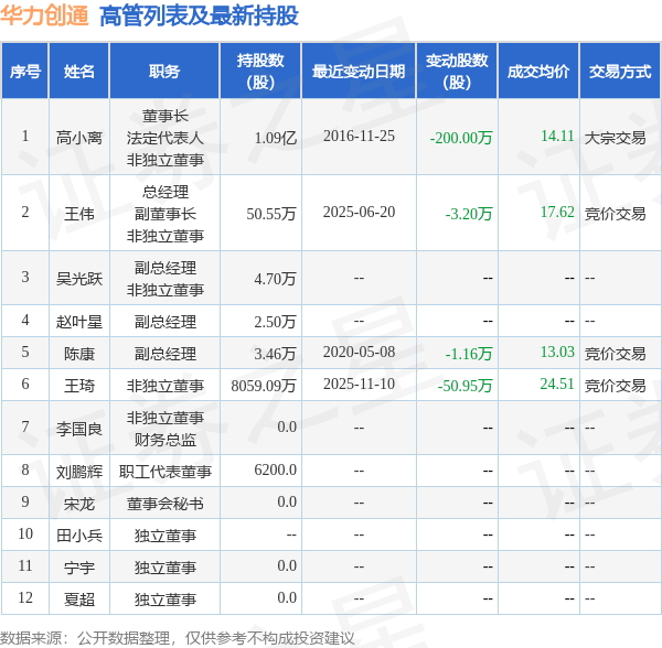 华力创通近半年内的董监高及核心技术人员增减持详情如下: