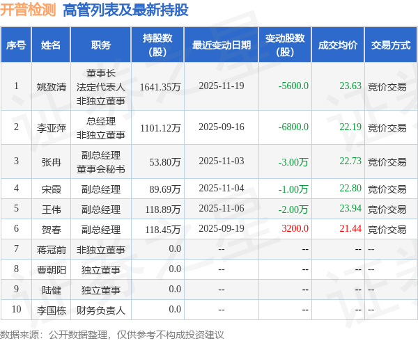 开普检测近半年内的董监高及核心技术人员增减持详情如下: