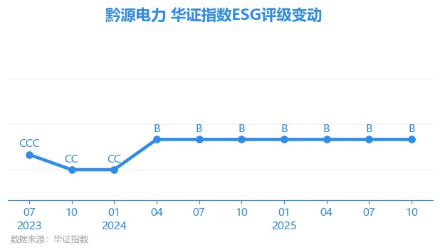 日前,华证指数公布了新一期(2025年10月31日)的ESG评级结果,黔源电力(002039.SZ)获得B评级(华证指数评级为C起至AAA九档,C为最低档,AAA为其最高一级评级/AA为其第二档),上一期(2025年7月31日)ESG评级为B。本期ESG评级在58家电力公用事业行业A股上市公司中排名第38(上一期排名第37)。