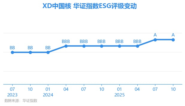 日前,华证指数公布了新一期(2025年10月31日)的ESG评级结果,中国核电(601985.SH)获得A评级(华证指数评级为C起至AAA九档,C为最低档,AAA为其最高一级评级/AA为其第二档),上一期(2025年7月31日)ESG评级为A。本期ESG评级在58家电力公用事业行业A股上市公司中排名第4(上一期排名第4)。
