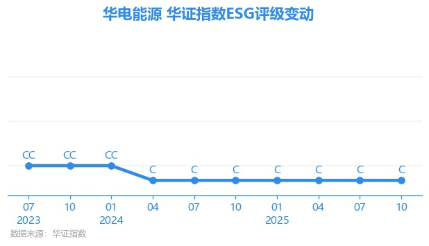 日前,华证指数公布了新一期(2025年10月31日)的ESG评级结果,华电能源(600726.SH)获得C评级(华证指数评级为C起至AAA九档,C为最低档,AAA为其最高一级评级/AA为其第二档),上一期(2025年7月31日)ESG评级为C。本期ESG评级在58家电力公用事业行业A股上市公司中排名第54(上一期排名第55)。