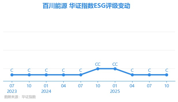日前,华证指数公布了新一期(2025年10月31日)的ESG评级结果,百川能源(600681.SH)获得C评级(华证指数评级为C起至AAA九档,C为最低档,AAA为其最高一级评级/AA为其第二档),上一期(2025年7月31日)ESG评级为C。本期ESG评级在22家燃气公用事业行业A股上市公司中排名第19(上一期排名第19)。