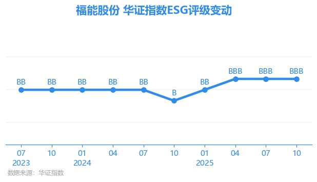 日前,华证指数公布了新一期(2025年10月31日)的ESG评级结果,福能股份(600483.SH)获得BBB评级(华证指数评级为C起至AAA九档,C为最低档,AAA为其最高一级评级/AA为其第二档),上一期(2025年7月31日)ESG评级为BBB。本期ESG评级在58家电力公用事业行业A股上市公司中排名第14(上一期排名第12)。