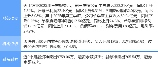 2025年10月29日,开源证券研究员孙二春,温佳贝发布了对天山铝业的研报《公司信息更新报告:Q3业绩表现亮眼,成长与红利兼具》,该研报对天山铝业给出“买入”评级。证券之星数据中心根据近三年发布的研报数据计算,该研报作者对此股的盈利预测准确度为94.61%。
