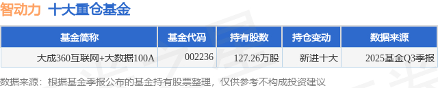根据2025基金Q3季报公募基金重仓股数据,重仓该股的公募基金共1家,其中持有数量最多的公募基金为大成基金的大成360互联网+大数据100A。大成360互联网+大数据100A目前规模为7.88亿元,最新净值3.3449(12月2日),较上一交易日上涨0.36%,近一年上涨36.55%。该公募基金现任基金经理为夏高。夏高在任的基金产品包括:大成沪深300增强发起式A,管理时间为2021年2月23日至今,期间收益率为-4.9%;大成动态量化配置策略混合A,管理时间为2023年4月14日至今,期间收益率为14.64%;大成中证500指数增强A,管理时间为2024年7月19日至今,期间收益率为47.53%。