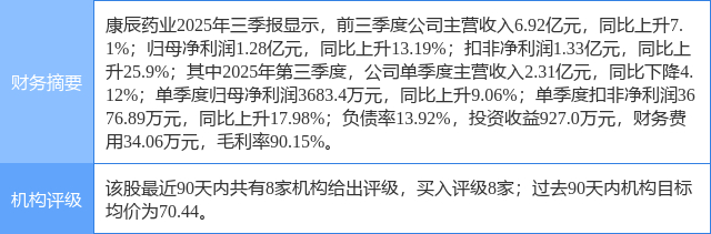 2025年11月5日,太平洋研究员谭紫媚,张懿发布了对康辰药业的研报《康辰药业:血凝酶市场潜力较大,在研管线临床推进顺利》,该研报对康辰药业给出“买入”评级。证券之星数据中心根据近三年发布的研报数据计算,该研报作者对此股的盈利预测准确度为36.46%。