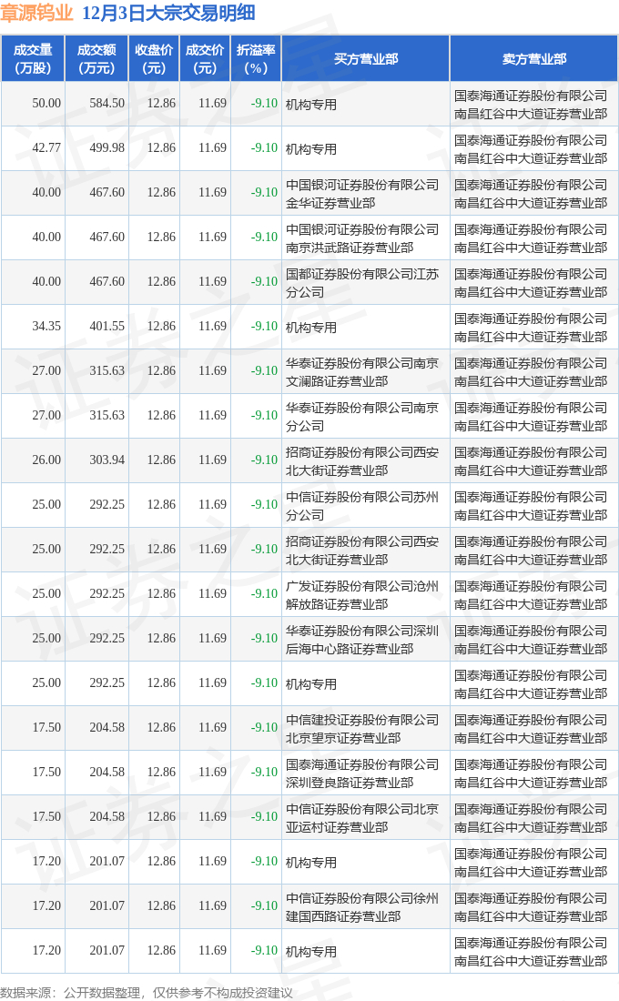 证券之星消息,12月3日章源钨业发生大宗交易,交易数据如下: