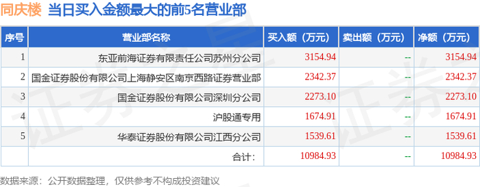 截至2025年12月3日收盘,同庆楼(605108)报收于24.07元,上涨10.01%,已连续涨停2天,换手率13.76%,成交量35.78万手,成交额8.0亿元。