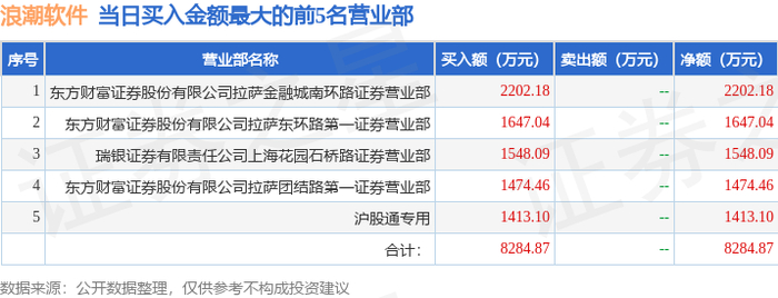 证券之星消息,沪深交易所2025年12月3日公布的交易公开信息显示,浪潮软件(600756)因有价格涨跌幅限制的日收盘价格跌幅偏离值达到7%的前五只证券登上龙虎榜。此次是近5个交易日内第3次上榜。