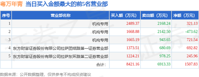 从龙虎榜公布的当日买卖数据来看,机构合计净买入569.05万元。