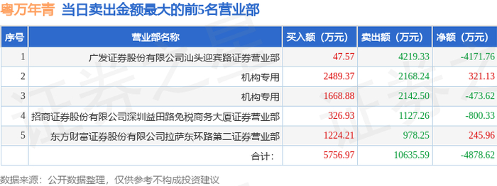 证券之星消息,沪深交易所2025年12月3日公布的交易公开信息显示,粤万年青(301111)因日涨幅达到15%的前5只证券登上龙虎榜。此次是近5个交易日内第2次上榜。