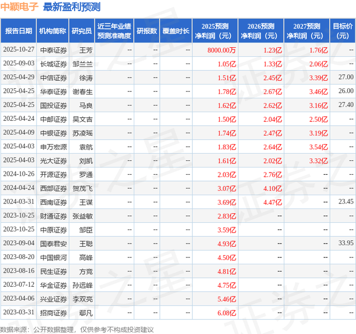 中颖电子2025年三季报显示,前三季度公司主营收入9.67亿元,同比下降1.14%;归母净利润5704.63万元,同比下降36.59%;扣非净利润5508.94万元,同比下降36.99%;其中2025年第三季度,公司单季度主营收入3.14亿元,同比下降3.01%;单季度归母净利润1598.38万元,同比下降15.55%;单季度扣非净利润1671.93万元,同比下降15.08%;负债率18.59%,投资收益191.26万元,财务费用-481.07万元,毛利率32.45%。