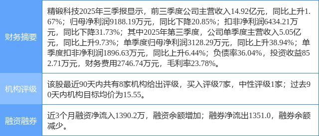 今日精锻科技(300258)涨6.03%,收盘报13.55元。