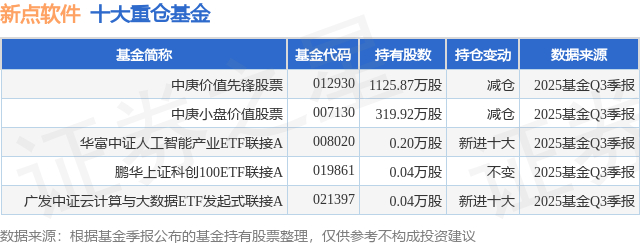 重仓新点软件的公募基金请见下表: